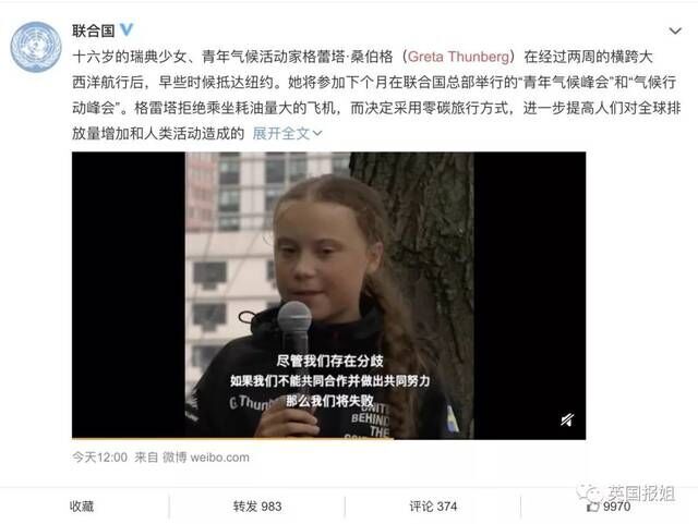 昨天微博上不少同学都看到了联合国发的一条微博:
