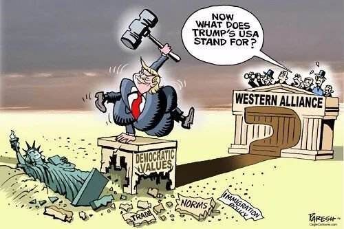 特朗普是有史以来争议最多的一位美国总统,入主白宫后,他不仅四面出击,到处挥舞关税大棒,就连欧洲盟友也不放过。特朗普说,欧盟一直在贸易上占美国的便宜,而他就是来终结这一切的。特朗普还要求欧洲盟友增加军费,甚至还以退出北约相要挟。此外,特朗普还要把叙利亚的烂摊子扔给欧洲盟友,甚至威胁欧盟不参与对伊朗的制裁,连同欧洲企业也一起收拾。