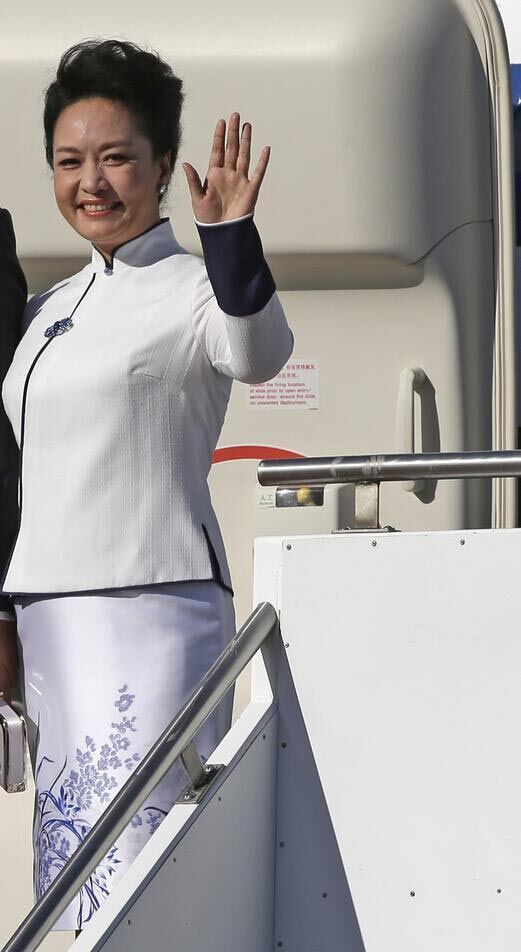 “总的来说,这一次去美国的风格和以往访欧有非常大的变化,这非常值得赞赏。和欧洲相比,美国人的衣着风格更加简洁大方,而彭老师的衣着改变也体现了这一点。”陈野槐说,“下飞机的这套衣服,基本上沿用了她一贯的风格,就是以中式为主。这件衣服裁剪合身,带有明显的中式元素。这可以说是她旅程的起点,她从中国来,所以带来的首先是这种中式的感觉。”