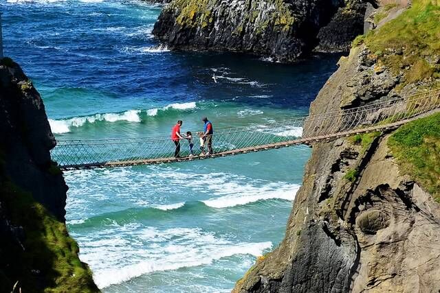 卡里克空中索桥景区,位于北爱尔兰北安特里姆海岸上巴林托伊东部。空中索桥将两个悬崖峭壁连接起来,跨度20米,离海面30米高。游人走在上面摇摇晃晃,很是刺激!