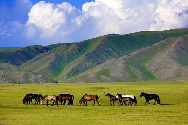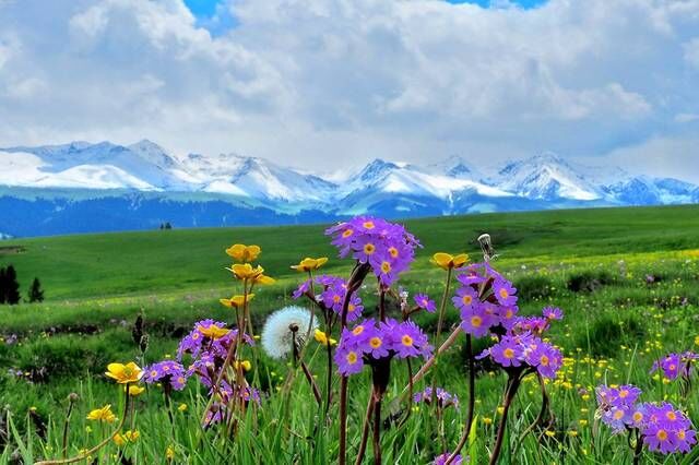 每到仲夏季节,巴音布鲁克草原上鲜花盛开,争奇斗艳,羊群像白云游荡,雪莲花般的座座蒙古包坐落其间。这个时候的巴音布鲁克,是一年之中最美的时刻,被誉为“人间天堂”。