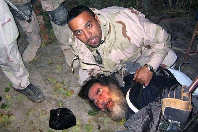 图为萨达姆被捕
