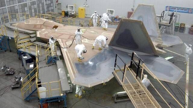 要让战机实现雷达隐形的效果,首先飞机外形能降低雷达波反射;其次,飞机机身上需要加装能吸收雷达波的隐身涂料。以美军F-22隐形战机为例,其机体表面采用非常娇贵的隐身涂料。每架F22都要敷设数层雷达吸波材料,其厚度达到了波长的1/4。不但程序十分繁杂,而且必须定期重新更换涂料,否则F22的隐身性能就将大打折扣。