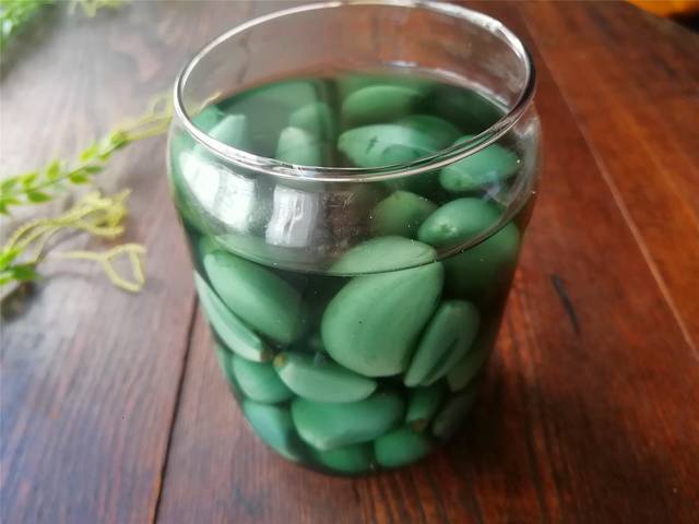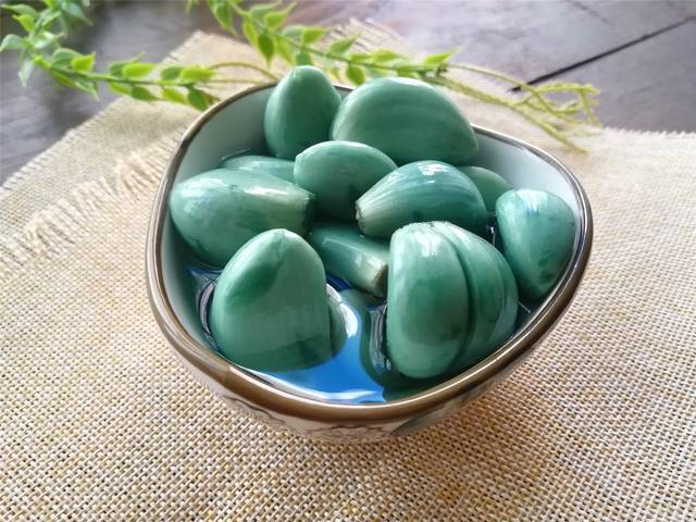 泡腊八蒜是“腊八节”节日习俗。按照老讲究儿,腊八蒜应该是腊八这天泡上,到了除夕的时候,配上饺子食用。在阴历腊月初八的这天来泡制蒜。其实材料非常简单,就是把扒好的大蒜瓣儿,放在醋里浸泡而成,装入小坛或者瓶子封严,至除夕启封,那蒜瓣湛青翠绿,蒜辣醋酸香溶在一起,扑鼻而来,口味偏酸、微辣。腊八蒜有蒜香的味道,但是口感又没大蒜那么辛辣,能开胃、助消化、解腻,是过年吃饺子的最佳佐料,就饺子吃是美不胜收。怎样把腊八蒜腌的颜色翠绿呢?有什么技巧吗?下面就详细的介绍下腌腊八蒜的做法: