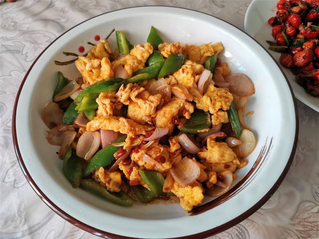 【毛葱炒笨鸡蛋】这道菜肴是地道的东北菜,也算是一道农家菜,由鸡蛋,毛葱,尖椒和黄豆酱一起炒制而成,笨鸡蛋很多人不知道是什么蛋,其实,我们这里把农家散养鸡下的蛋,叫笨鸡蛋,毛葱是一种特产蔬菜,长得像小号的洋葱,比鸡蛋还小,葱味浓,学名叫:分蘖葱头,毛葱在东北地区非常常见,人们喜欢用毛葱来当辅料或者蘸酱食用。味道比洋葱浓烈,把这几种食材放在一起炒,鸡蛋鲜嫩,酱香味浓,是一道很好的下饭菜。