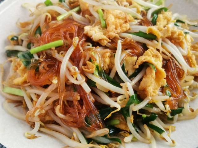 冬季天冷,吃的菜肴比较油腻重口一些,来补充身体所需的能量和热量。油腻的菜肴吃多了,让人容易没有胃口,想吃一些清淡的菜肴调节一下胃口,今天分享一道营养美味的家常小炒,就是把绿豆芽、韭菜、粉丝、鸡蛋合在一起炒,这道合菜吃起来清淡,但是非常的爽口,绿豆芽脆嫩,韭菜和鸡蛋鲜嫩,粉丝爽滑,炒合菜营养又美味,吃着清淡又脆嫩爽口,是一道不错的家常下饭菜。教你在家炒合菜的小技巧,鸡蛋鲜嫩,粉丝根根分明不成团,清淡味美,下面分享下做法: