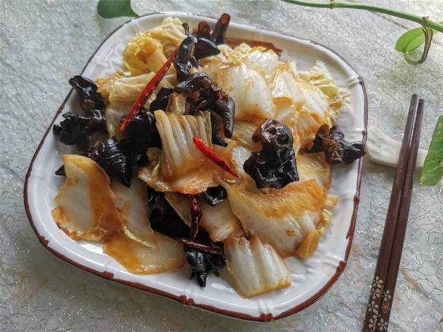 这道菜肴在东北有个贴切的的菜名叫:黑白菜,这道菜肴黑白分明,无论从食材的颜色和名称,也算是名副其实,并且黑木耳和大白菜搭配炒制,也是素炒菜肴中的佳品菜肴。黑木耳有“素中之荤”的美誉,具有清肺润肠、滋阴补血的好处,还可以清除体内垃圾。所以这道菜肴也是非常适合女士吃的素菜小炒,这道菜肴做法简单,吃着口感脆嫩,清爽开胃,素炒搭配味更好,比大鱼大肉好,你也学会它,做给家人吃吧,下面分享下做法: