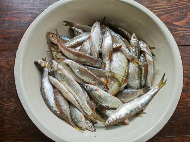 在市场买的野生小白鱼,价格还不贵,10块钱一小盆,大概有2斤多重,这是本地的小野生鱼,平时吃多了人工饲养的鱼,食之无味,比较喜欢吃小野杂鱼,感觉味道要比大鱼好吃,鱼肉非常鲜嫩,小白鱼不仅新鲜美味,营养价值也很丰富,只是这鱼小骨刺比较多,用油炸的方法做太好吃,香酥可口,买的有点多,全部都用来油炸太费时间,就用一半的鱼做得油炸,剩下一半的鱼,做的酱焖。