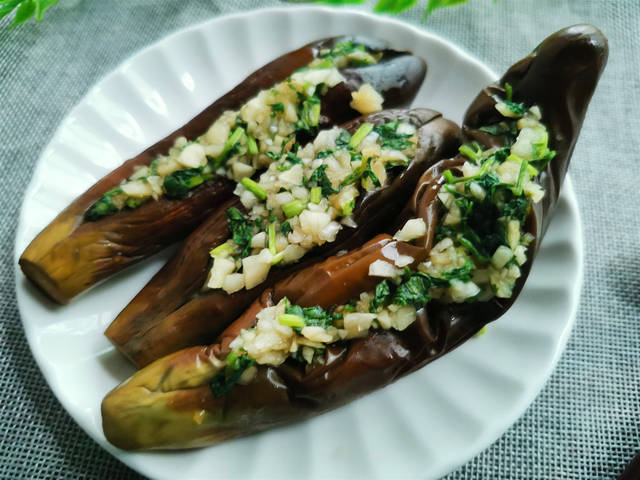 【蒜茄子】所需材料:茄子3斤、香菜2两、大蒜1斤、盐1.5汤匙、味精适量、