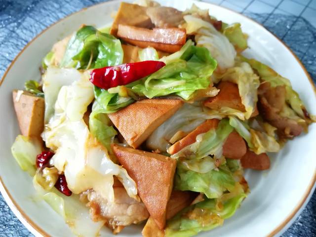 说到包菜大家都很熟悉,一年四季都有卖,家里也会经常做包菜的菜肴,包菜含有丰富的维生素C、钾和叶酸。 包菜能提高人体免疫力,预防感冒,包菜的做法很多,尤其是做手撕包菜,味道特别好吃,吃够了手撕包菜,教你这个包菜的做法,分享一道包菜好吃的做法,香干是在南方经常吃得一种豆制品,北方吃的很少,香干可制作多种菜肴,可冷拌,可热炒,可油炸,可烤制,做成后鲜香可口,营养丰富,把包菜和香干,再加上五花肉一起炒,把包菜撕一撕,和这两样食材炒一炒,味道香营养好,味道香喷喷,比手撕包菜还下饭,你也学会它,做给家人吃吧,下面看看这道菜肴是怎样做的吧。
