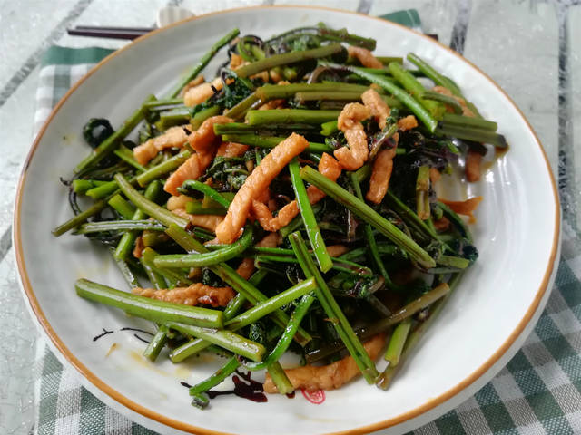 猴腿菜长于山野中,属天然蔬菜,极少受到农药、化肥的污染,因此是一种最“洁净”的无公害蔬菜,猴腿菜的做法很多,炒食,凉拌,腌渍或者晒成干菜都可以。今天分享的猴腿菜的做法,是和猪肉丝一起炒,猴腿菜脆嫩清爽,肉丝滑嫩,做法也简单,不需要过多的调料,保持山野菜绿色清爽的口味,下面分享下做法:
