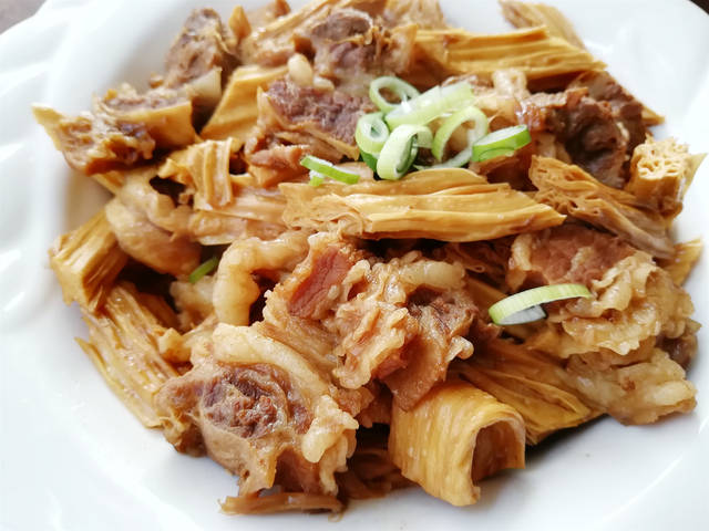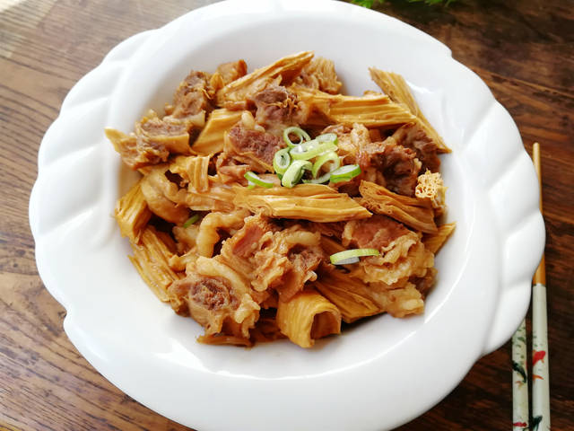 很多人都喜欢吃牛肉,不光是牛肉营养丰富,牛肉的味道也非常香,在炎炎夏日里,由于气温的不断升高,人很容易会出现全身乏力、食欲不振、容易出汗、昏昏欲睡等症状。牛肉营养价值高,合理食用,吃了也不用担心上火,非常适合夏日吃的肉类之一,腐竹含有丰富的蛋白质及多种营养成分, 腐竹含有多种矿物,补充钙质,防止因缺钙导致的骨质疏松,增进骨骼发育,腐竹浓缩了黄豆中的精华,是豆制品中的营养冠军。腐竹最适合在中午吃,可以为身体补充足够的能量,以对抗后半天工作的疲劳,还具有良好的健脑作用。