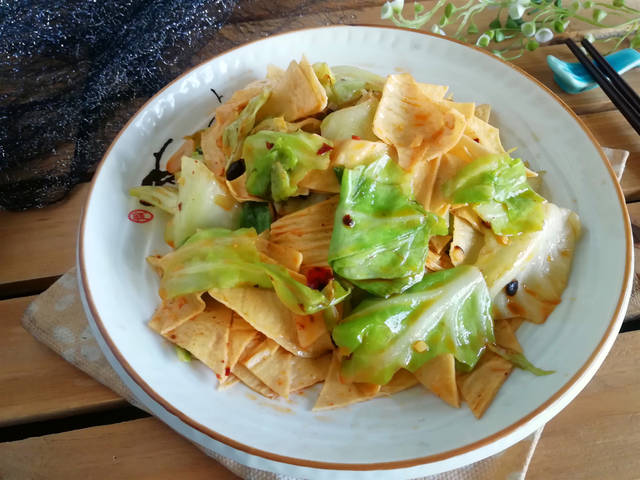 今天分享的这道包菜的做法,是和油豆皮一起炒,做法非常简单,油豆皮是在豆浆煮沸之后表面形成天然油膜“挑”起来晾干成的豆腐皮,油豆皮营养丰富,蛋白质、氨基酸含量高,还人体所必需的微量元素。儿童食用能提高免疫能力,促进身体和智力的发育。将这两种食材搭配一起炒,营养丰富,包菜脆嫩,油豆皮口感爽滑,还加入了老干妈一起炒,风味独特,豆豉风味浓郁,特别开胃,你也学会它,做给家人吃,下面分享下做法: