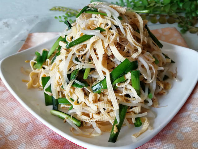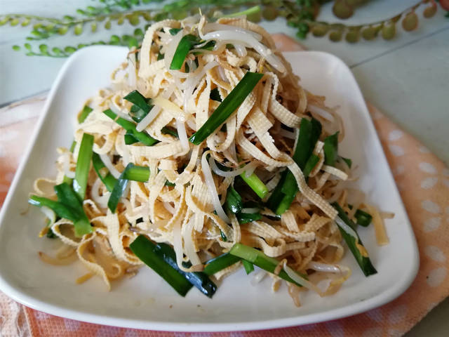 春季,家常小炒首选它,素炒不放肉,怎么吃都不长肉,好吃又经济实惠,素炒三丝是东北的一道家常小炒,不用放肉,将绿豆芽,干豆腐和韭菜一起炒制而成,做法简单,好吃美味,健康养生,符合现代养生观念,绿豆在发芽 过程中,维生素C会增加很多,而且部分蛋白质也会分解为各种人所需的氨基酸,所以绿豆芽的营养价值比绿豆更大。常吃绿豆芽,能清肠胃,解热毒。还有减肥的作用,韭菜味道非常鲜美,还有独特的香味。初春时节的韭菜品质最佳,韭菜被称为“洗肠草”。韭菜还含有丰富的纤维素, 能增进胃肠蠕动,把这三种食材放在一起炒,味道清淡可口,营养丰富,吃了也不长肉,爱美的女士不要错过这道菜肴,下面分享下做法: