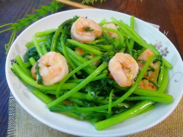 茼蒿别总涮着吃,教你这个做法,鲜嫩爽口,节后吃它消食开胃,在中国古代,茼蒿为宫廷 佳肴 ,所以又叫 皇帝菜 。茼蒿有蒿之清气、菊之甘香。有“安心气,养脾胃,消痰饮,利肠胃”之功效。苘蒿中含有多种挥发性物质,它们所散发的特殊香味有助于增加唾液的分泌,能够促进食欲,消食开胃。怎样能把茼蒿做得好吃。今天教你这个做法,和虾仁一起炒,蒜香味浓,鲜嫩可口,清香又清淡,下面分享下做法: