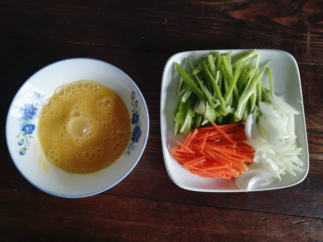 材料:挂面300克、尖椒2个、鸡蛋2个、胡萝卜1段、洋葱1/3个、油盐适量、姜1片、大蒜2瓣、红烧酱油1汤匙、