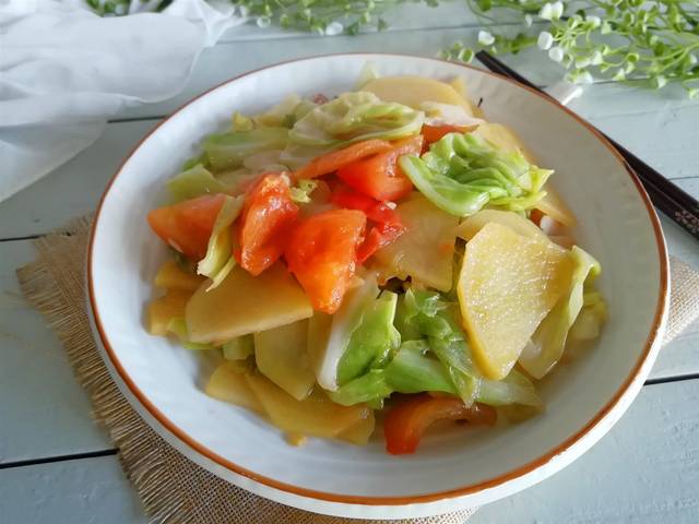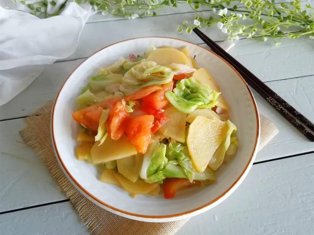 元旦大鱼大肉吃得腻,节后吃这个菜,增加食欲,清肠胃,包菜含有非水溶性膳食纤维,膳食纤维可以刺激肠道蠕动,对保持消化系统健康有极其为重要的作用。土豆中含有丰富的膳食纤维,食用后可以带走一些油脂和垃圾,具有一定的通便排毒作用。包菜不一样的做法,和这两种食材一起炒,西红柿酸爽开胃,吃着清淡,营养好,做法简单,下面分享下做法: