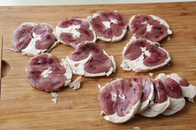 1.牛腰子要选用带肥油的味道才香,将牛腰子切成1厘米厚的大片。