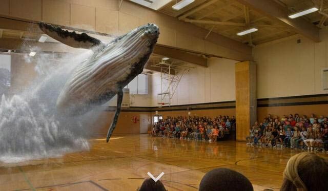 MagicLeap网站还贴出了一些照片,清楚地显示出人们不用佩戴任何眼镜也能看到全息特效。