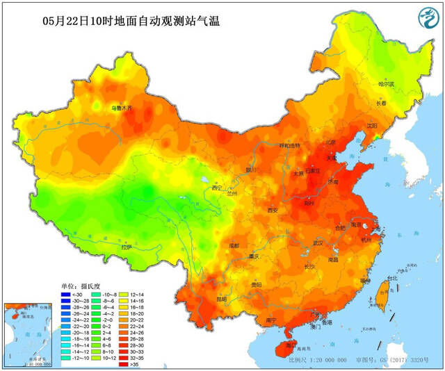 国家气象台预计5月22-24日,我国北方高温天气将拉开序幕,局部地区将超过40摄氏度!
