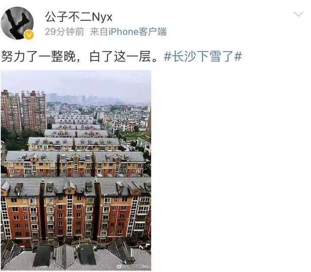 朋友,你那下雪没呢? “大雪” 节气刚过, 湖南各地也都进入了等雪来的节奏~ 省会长沙 这几天气温已经低至0℃ 9号更是下起了雪籽籽 ...... 虽然只是这么一丢丢, 但朋友圈的各位还是立马上传了“捷报”