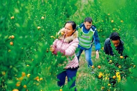 今年46岁的韦孝义是广西鹿寨县大河村的建档立卡贫困户。当地党委政府在脱贫攻坚工作中给予他特殊帮扶,其中包括相应的低保、高龄、残疾等补贴。经过辛勤劳作和政府帮扶,他们一家目前已经进入脱贫公示阶段。图为2019年11月20日,韦孝义(右一)和妻子韦艳娜(左一)在采摘蜜桔。