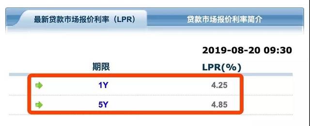 今天(8月20日)早上9点30分,中国人民银行授权全国银行间同业拆借中心公布贷款市场报价利率(LPR):中国公布新机制下1年期贷款市场报价利率为4.25%,此前为4.31%;5年期贷款市场报价利率为4.85%。