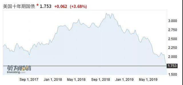 自2018年底以来,美国十年期国债收益率呈单边下滑趋势,并且与3个月国债收益率的倒挂幅度越来越大。
