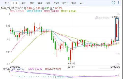 8月2日,受此消息影响,隔夜人民币汇率最高下跌700点,最终收报6.96一线,下跌500点左右,让人出了一身冷汗。