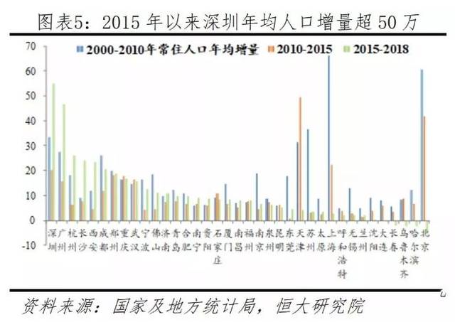 深圳从曾经的人均GDP仅为香港1/11的小渔村,发展到2018年GDP超过香港的国内的第二大金融中心,和中国的“硅谷”。产业方面,目前深圳已经形成了多条高端产业链,比如以华为、中兴等为龙头的通信产业链;招商、平安等为龙头的金融产业。人口方面,2015年以来深圳年均人口增量持续超50万,2018年深圳GDP突破2.4万亿,人均GDP达18.6万元,2016-2018年GDP同比增长7.6%,也是一线城市中最快的一个。