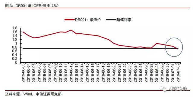 7月2日,反映市场利率走势的DR001利率收盘价跌至0.90%,特别值得一提的是,其盘中最低价甚至跌到0.70%,低于0.72%的超额准备金利率,史上首次。
