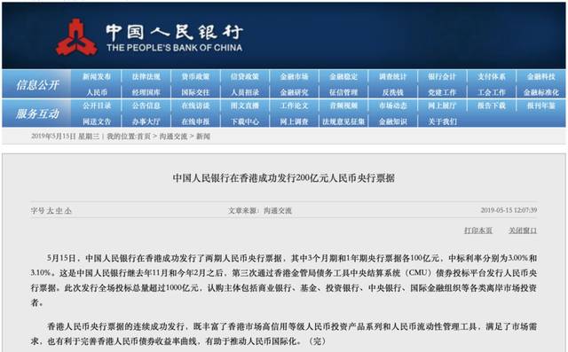 5月15日,央行在香港成功发行200亿元人民币央行票据,在当前的市场环境下意义重大。