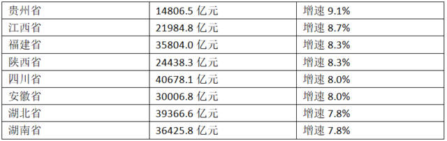 根据统计局公布的2018年各省份GDP增速对比可知,在top8中,贵州、江西、安徽等经济欠发达省份经济增速较快,其中像安徽、湖北、湖南和江西也都属于中部省份。
