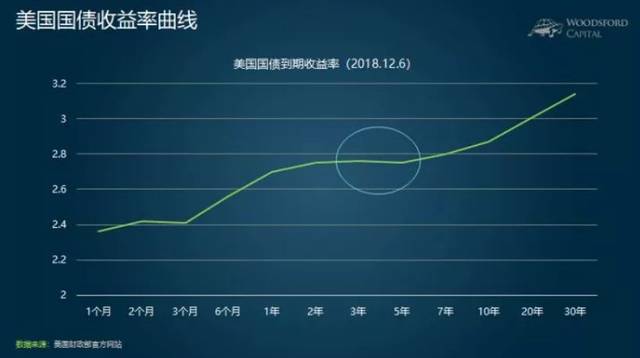 在这张图中,理论上1个月-30年的国债收益率曲线应该是依次增长的,可是在圈圈那里,我们发现3年期国债收益率反而略高于5年期。也就是说,3年期国债和5年期国债的收益率发生了倒挂。不过这种情况属于轻微倒挂,而此次是3个月期与10年期美国国债收益率出现倒挂,期限跨度如此之长的倒挂通常被视为较为明显的经济衰退预测指标。