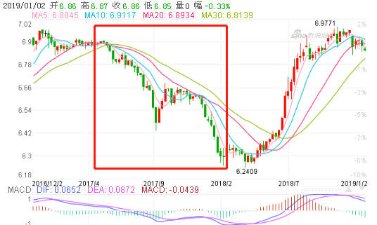 数据显示,2017年7月和8月的出口同比增长分别为11.2%和6.9%,较上半年持续大幅回落,PMI新订单指数也从5月的52降至目前的50.4。可见,在当时中美博弈等宏观环境未恶化的背景下,这主要是由人民币升值所造成的。