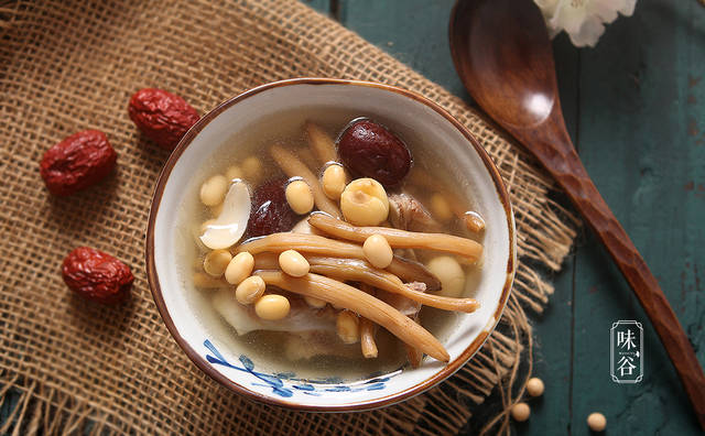 黄花菜之所以叫“忘忧草”,就是因为它具有安神解郁、除烦助眠的功效。黄花菜中因含有较多的维生素B1,可营养神经、促进神经稳定;五羟色胺成分可缓解抑郁、愉悦心情,所以适当食用黄花菜有助于心神安定、快速入眠。今天我就用黄花菜干做一道养神安眠的黄花菜莲子黄豆汤,学会常给家人喝,汤浓味道鲜,越喝越喜欢,汤里的莲子和百合也有安神的功效,经常喝这汤之后,睡眠质量好了,整个身体状态都恢复过来了。