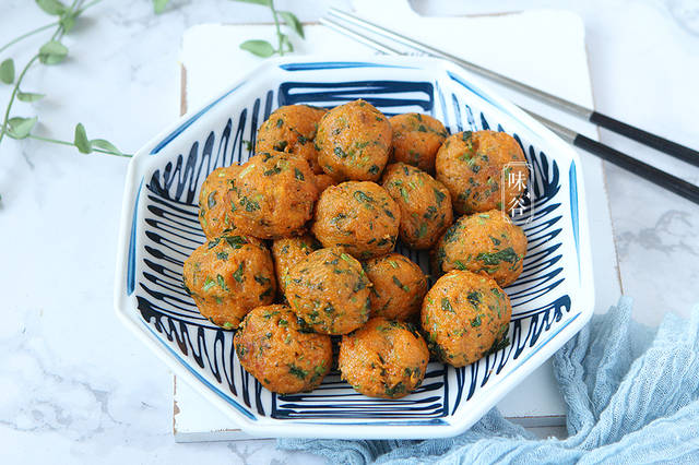 儿子不太爱吃青菜,让蔬菜变个身,让儿子爱上蔬菜。胡萝卜不仅便宜,营养价值还很高,含有丰富的β-胡萝卜素和维生素,尤其是维生素A,胡萝卜对眼睛有好处,还能提高免疫力,孩子常吃增智力强身体!吃法多种多样,炒胡萝卜丝,胡萝卜馅,小朋友都吃腻了,今天我就来跟大家分享做一道炸胡萝卜素丸子。相对于肉丸子来说,素丸子的口味会更加的清爽,吃多了也不会觉得油,素丸子夹杂着一股蔬菜的清香味,要比肉丸子好吃多了。而且最近猪肉价格太高了,您大可试试这样做,炸好的丸子色泽金黄透绿,热乎乎的香喷喷的,保证让你家里挑食的孩子吃上瘾。