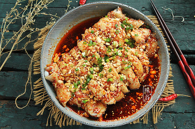 【材料】:鸡腿 5个、炒花生米 适量、辣椒面 3大匙、藤椒 1小把、八角 少许、葱蒜适量、料酒 1汤匙、生抽3汤匙、香醋 2汤匙、盐 1茶匙、糖 1茶匙