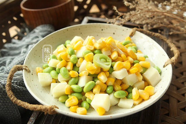 处暑过后,凉意渐生,气候变得干燥,与渐浓的秋意一同到来的还有秋乏,此时进行恰当的食物补给,能够使身体机能更快恢复,尤其处暑也是养生的好节气,利用这段时间好好的调理脾胃,让自己身体更健康充满活力是必要的,错过这段时间可是要等一年了。今天和大家分享一款调理脾胃的家常小炒——清炒毛豆玉米山药丁,简单几步,就能做出一道口感清脆的家常菜,这3样食材一白一黄一绿间,颜色丰富,口感丰富,营养全面。
