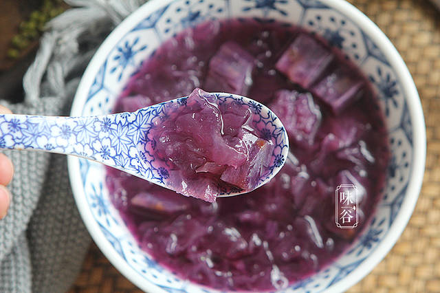 我爱吃紫薯,不仅因为它的营养和口味,还有那抹魅惑的紫色。平常做甜点,做粥时加点紫薯进去,卖相立马就不同了,超好看超好吃。尤其今天分享的这道由紫薯和银耳混合熬成的解暑汤——紫薯银耳羹,这家常滋补小甜品我每周都煮个两三回,即是一种甜品又是一种补品,味道超级好喝,银耳富含天然胶质,有滋阴、润燥、清热的功效,现在的女性都追求美,都很注重皮肤的保养,女性夏天多吃紫薯银耳羹,不仅能清热解暑,还滋润皮肤,美白排毒,拥有年轻好姿态哦!