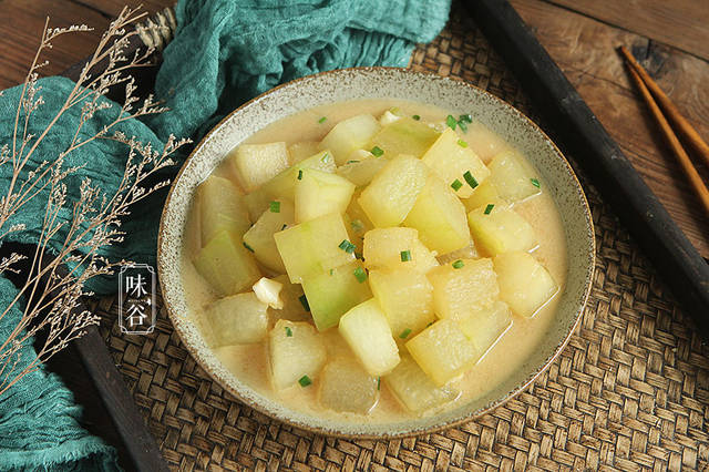 【材料】:冬瓜 450克、白腐乳 2块、蒜 2瓣、香葱 适量、生抽 1 汤匙、盐 少许