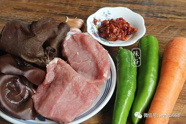 【材料】:里脊肉 250克、木耳 2朵(大)、青椒 2根、胡萝卜 1根、豆瓣酱 2汤匙、醋 1汤勺、白糖 2茶匙、粉 2茶匙、生抽 1汤匙