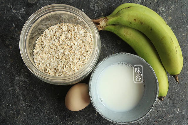 【材料】:香蕉 2根、即食燕麦 250克、牛奶 20克、鸡蛋 1个