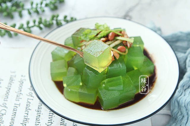 【材料】:香菜 1棵、青瓜 半根、炒花生米 适量、辣椒粉 1汤匙、蒜 适量、生抽 2汤匙、香醋 3汤匙、白凉粉 60克、白糖 半茶匙