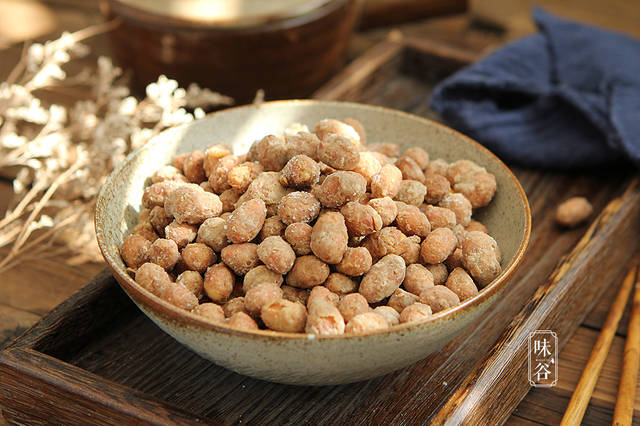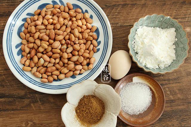 【材料】:花生 200克、五香粉 1汤匙、鸡蛋 1个、白糖 1汤匙、淀粉 小半碗