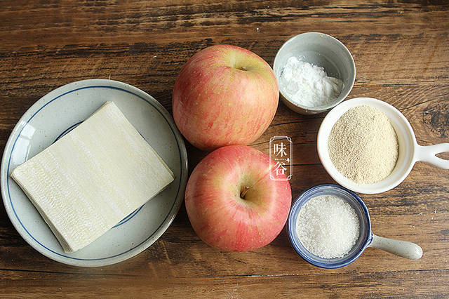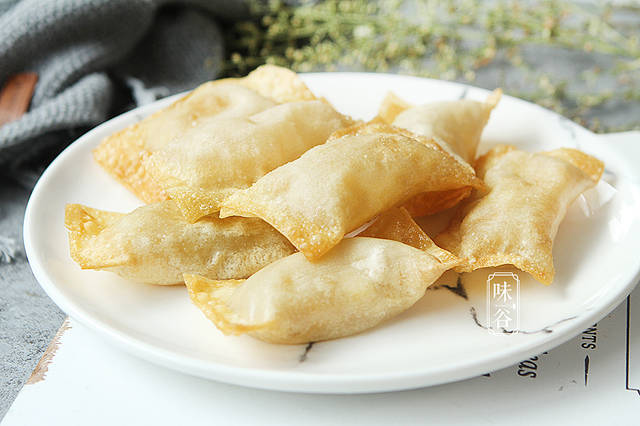 【材料】:馄饨皮50克、苹果2个、奶粉2大匙、淀粉2茶匙、糖 4茶匙、黄油1小块