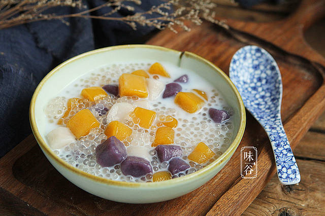 三色芋圆甜品