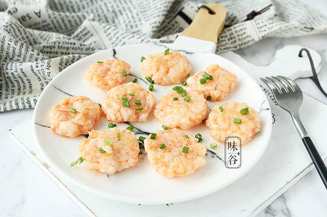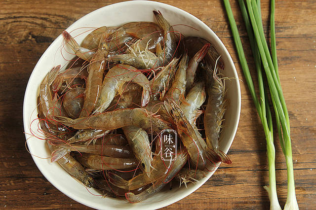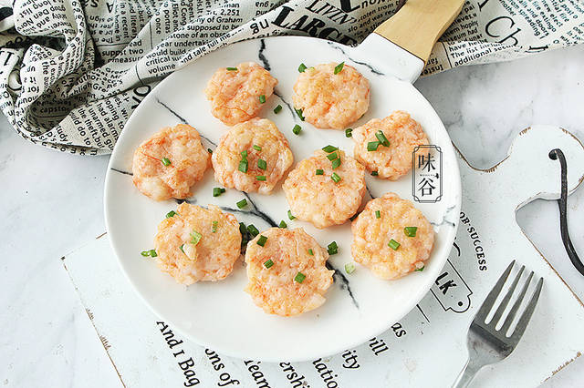 【材料】:鲜虾 500克、香葱 少许、淀粉 1茶匙、胡椒粉 半茶匙、盐 1茶匙