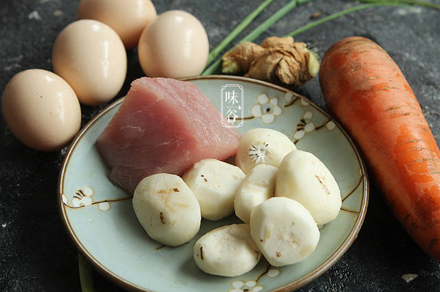 【材料】:鸡蛋 4个、胡萝卜 半根、马蹄 7个、猪里脊 100克、姜葱 适量、蚝油 1大匙、白糖 1茶匙、盐 1茶匙、料酒 半汤匙、五香粉 1茶匙、淀粉 2茶匙