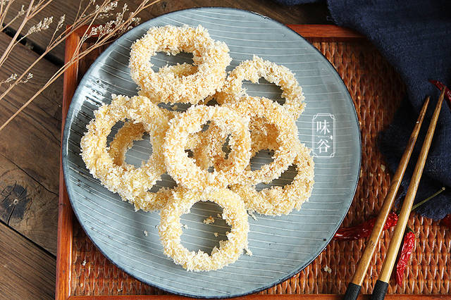 今天我就分享一种以洋葱为主料的新吃法,不用煎炒,而是做成炸洋葱圈,这种做法好吃又解馋,家人和孩子都喜欢吃的,是非常可口的一道小零食。香中带甜,外层的面包糠金黄酥脆,里面的洋葱软软的,甜甜的,肉乎乎的,外焦里嫩好吃到爆,关键做法也非常简单,就连吃不惯洋葱的我,都对这道小吃赞不绝口。做好后直接吃或撒上点椒盐或蘸点番茄酱,都是非常美味的。下面我们就一起去看看步骤吧。